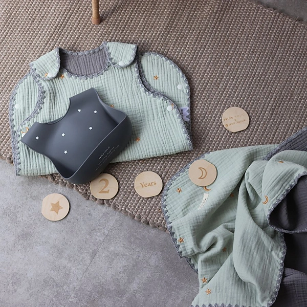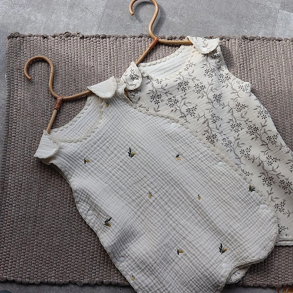 Sleeper accented with gauze and shell stitching. Every time you wash it, it contains soft and fluffy air. The front and back of the body can be completely removed, making it easy to change clothes even after sleeping. There is also a design that accents the inside with gauze of different colors, and it is finished cutely.
