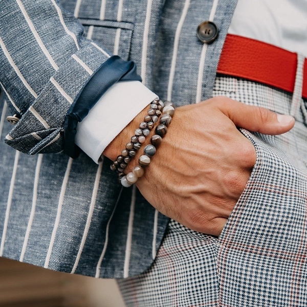 男士博茨瓦纳玛瑙串珠手链 - 彩色宝石