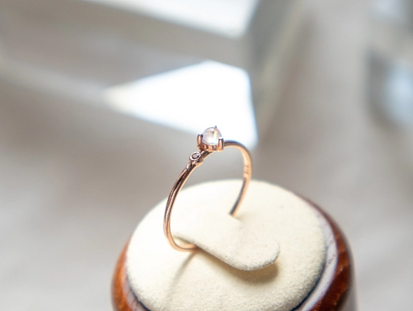 • 立体波波彩虹月亮石 + 小圆堇青石戒指