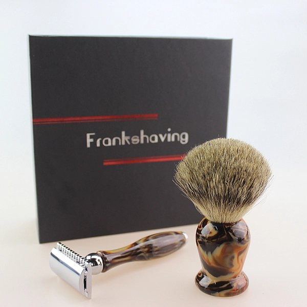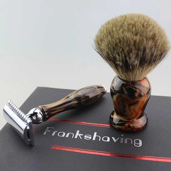 使用这款由 Frank Shaving 制造的奢华人造琥珀手柄剃须套装,以老式方式剃须。所有物品都包装在一个礼盒中,这使它成为送给自己的奢华套装或完美的预包装礼物。这种等级的纯獾毛呈现柔软的尖端,自然的头发颜色,易于加工的形式