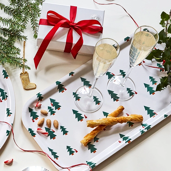 用我们时尚的圣诞森林服务托盘迎接节日。
