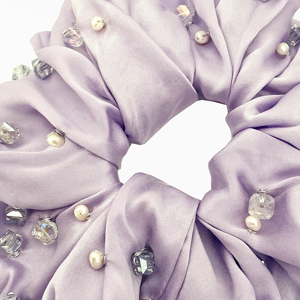 • Sansa 缀饰超大款真丝发圈 - 淡紫色