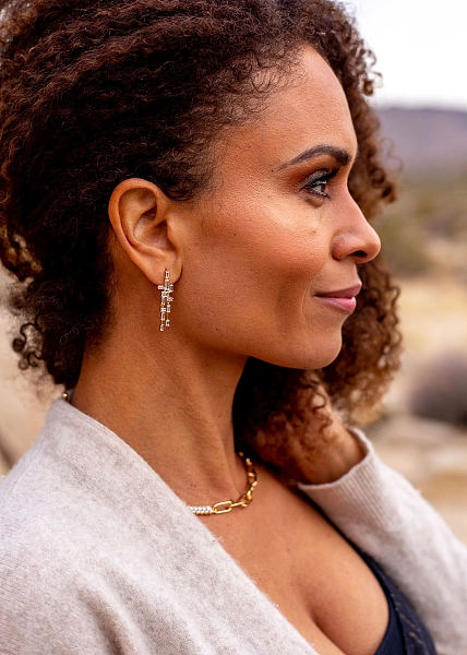 镀金水晶吊灯耳环。尺寸为 36 毫米。