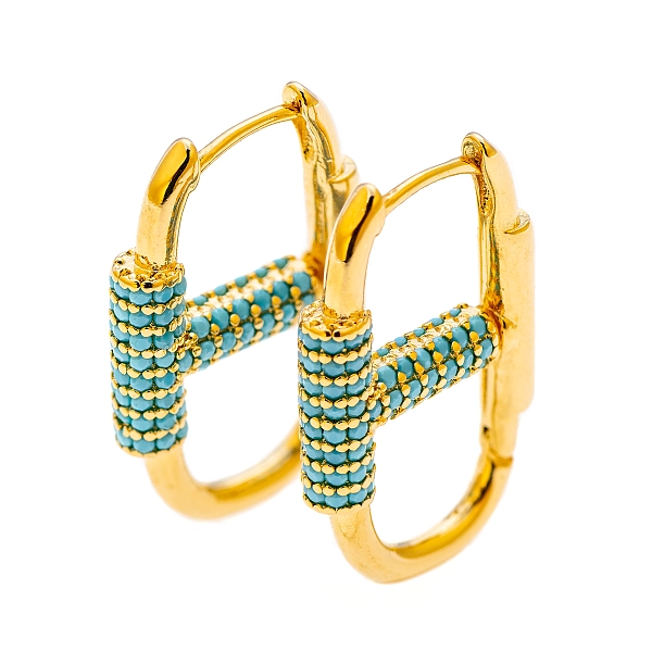 绿松石密钉和金色链环抱式耳环。尺寸为 22 毫米。