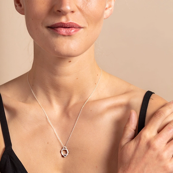 这条项链位于一条精致的链子上,由100%的回收银和道德来源的宝石手工制作而成,使其成为你可以放心重复佩戴的豪华珠宝。 你可以放心地重复佩戴。