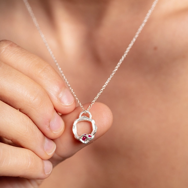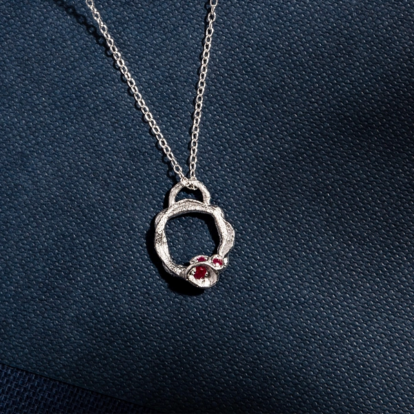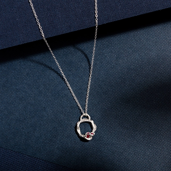 红宝石和银色小树枝永恒项链