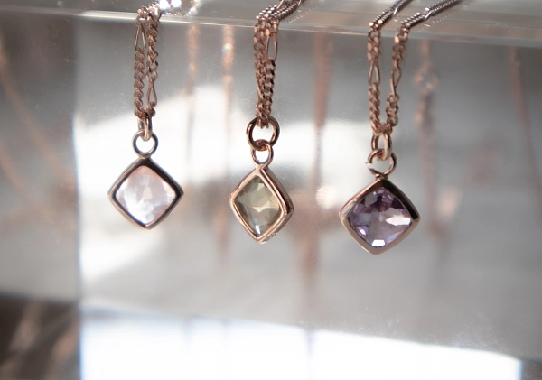 • 包边菱形紫水晶颈链