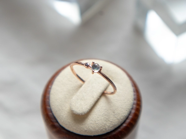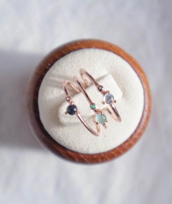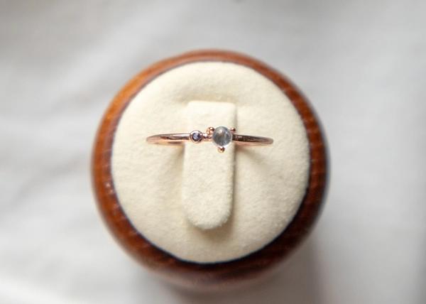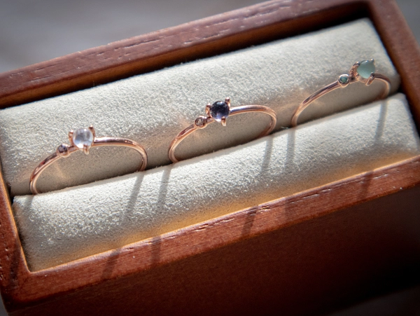 • 立体波波彩虹月亮石 + 小圆堇青石戒指