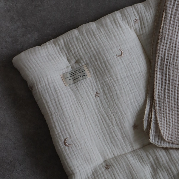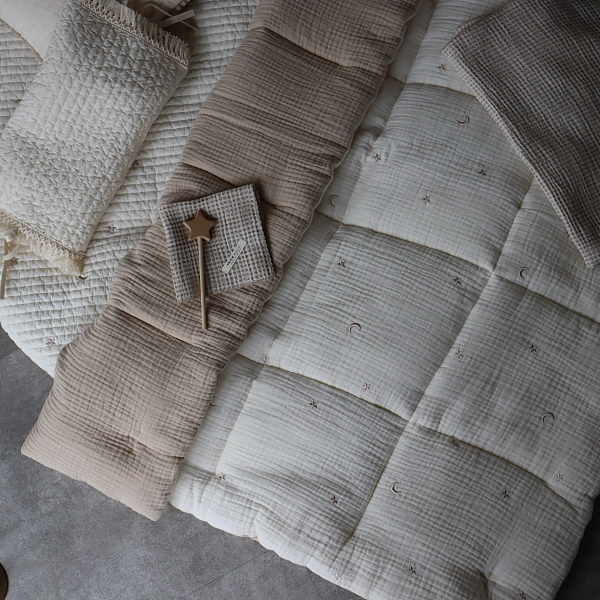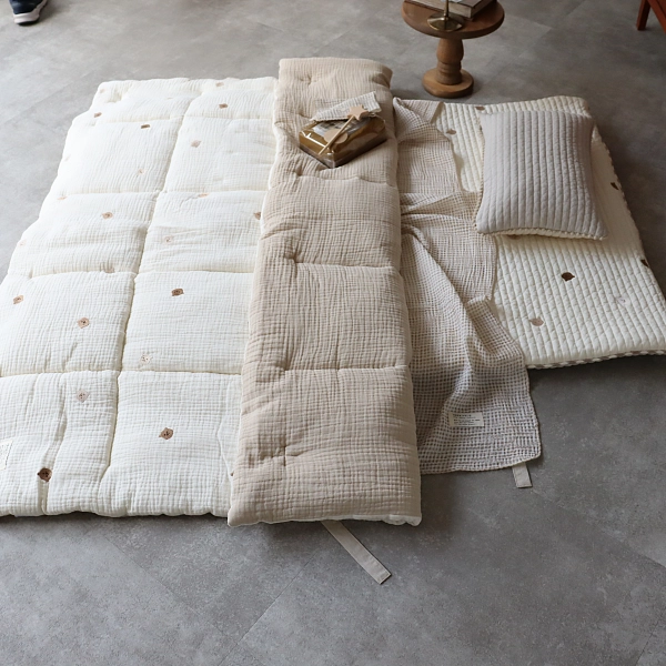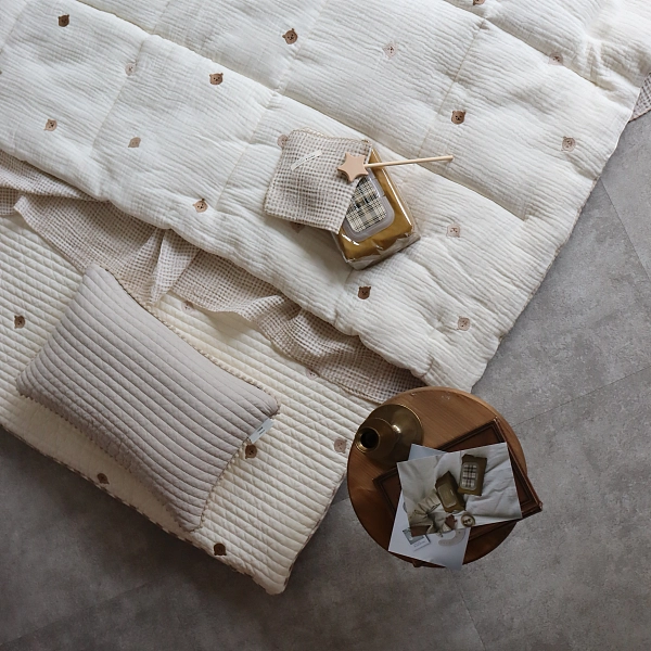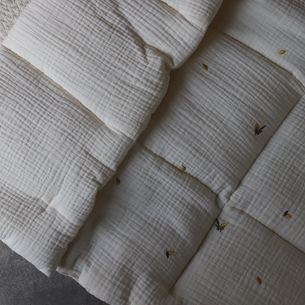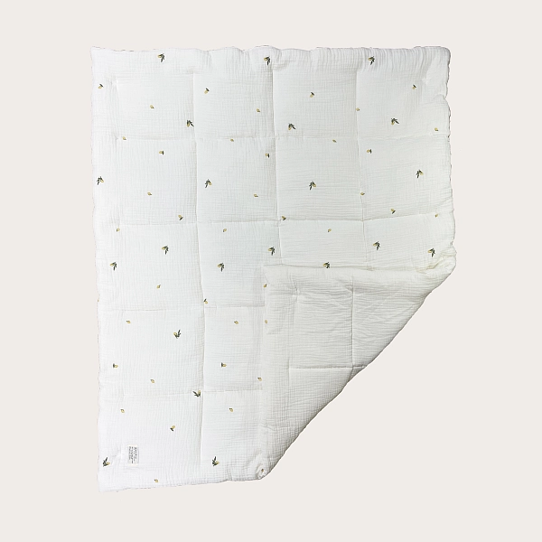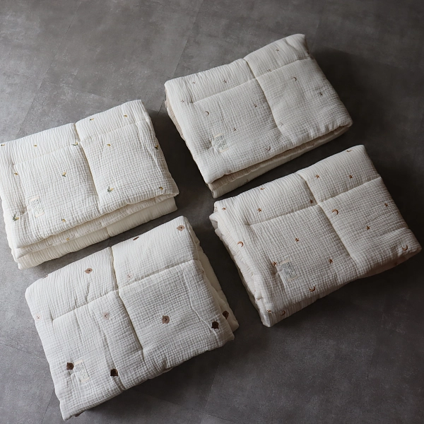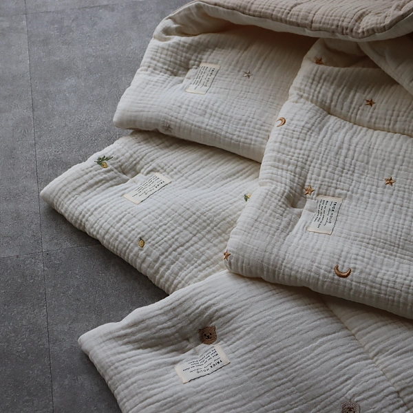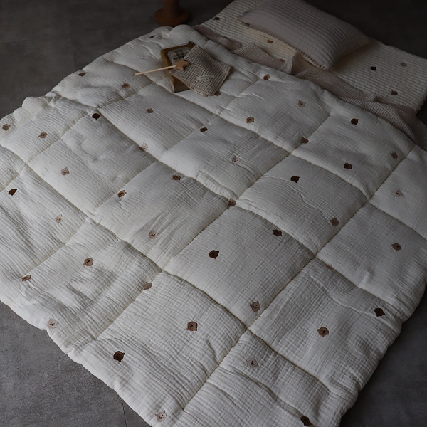 Gauze Embroidery Comforter with a soft and fluffy feel It has good sweat absorption and breathability, making it a pleasant and comfortable sleep. Filled with 8oz cotton, you will feel cozy and warm.