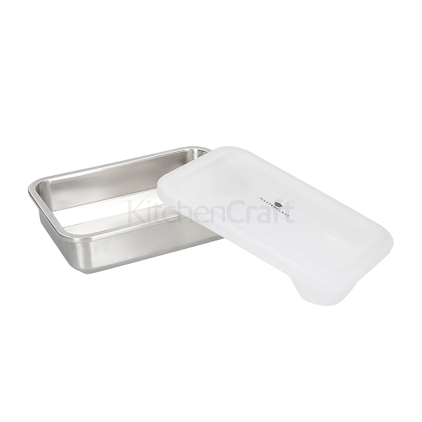• MasterClass一体式不锈钢食物储存盘,两人份的晚餐尺寸,1.3升,有袖子的。