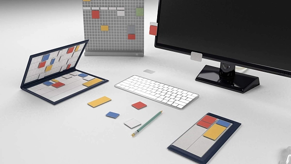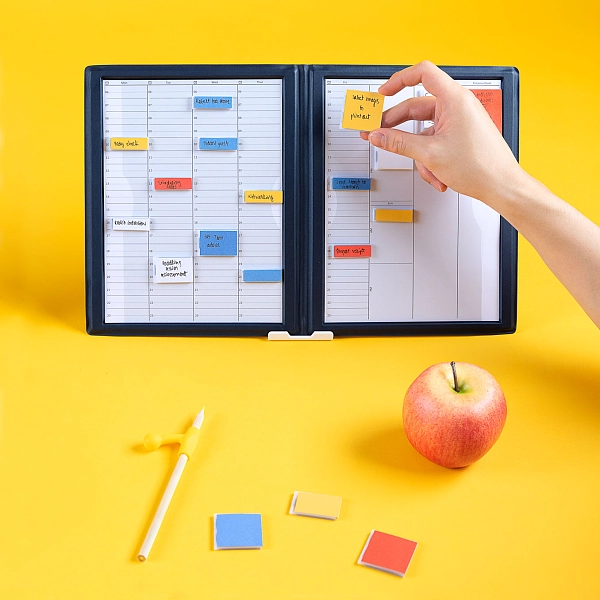 MoverBook是一个双连接整理板工具,采用类似皮革的成品工艺。在Mover受专利保护的按压和站立功能的帮助下,您可以轻松地在MoverBook上重新安排您的任务或想法,非常便于记笔记、头脑风暴和日程规划。