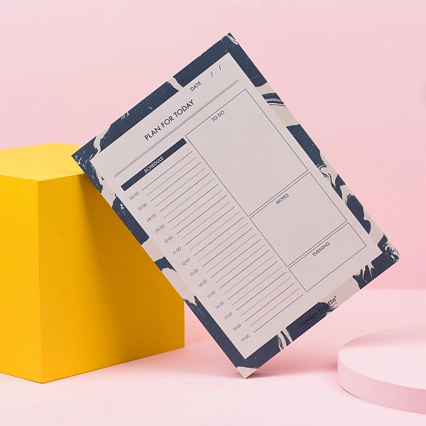 多彩A5计划表,记录日常任务,有序安排工作计划。 共50张可撕下的高品质纸张,衬底采用可回收纸板。 尺寸: 5.8" x 8.3"。