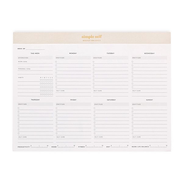 这不仅仅是一份待办事项清单,这种全面的52周可撕式办公桌垫帮助您将健康无缝地融入您的日常生活,并改善您的工作和生活平衡。每周平衡办公桌垫有自我保健、待办事项、习惯、目标、感恩和肯定的空间,集所有内容于一身。这是你在一周内保持生产力和注意力所需的一切,同时关注对你最重要的事情。