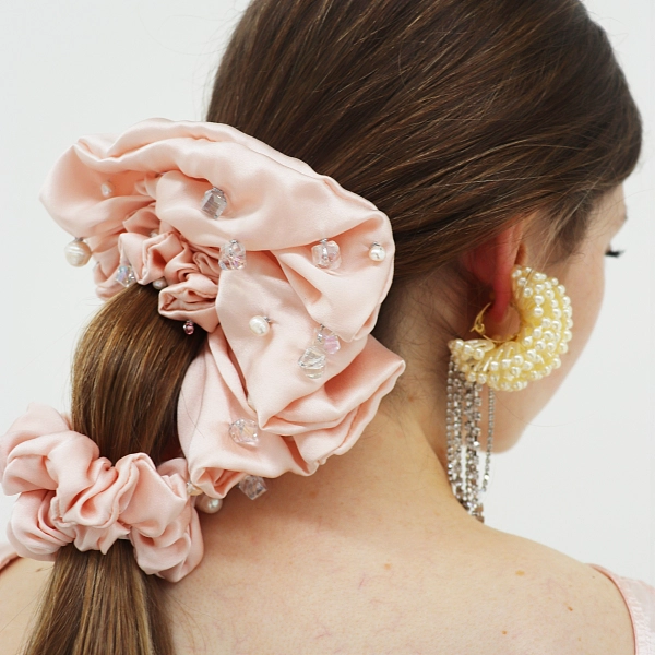 Lydia 装饰小号真丝发圈 2 件套 - 玫瑰色