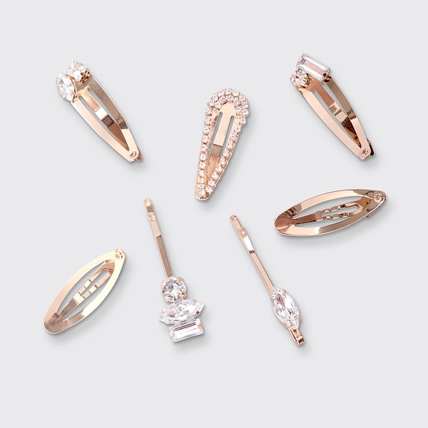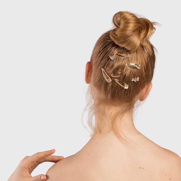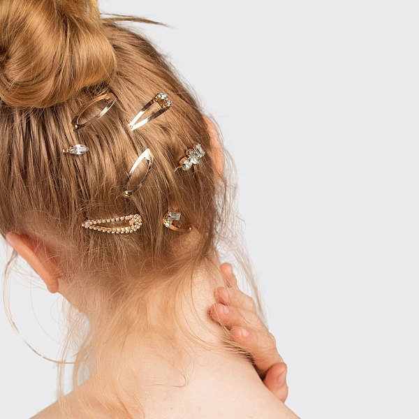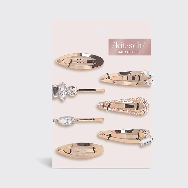 俗气的时尚宣言。用这款美丽的金色7件套微型可堆叠卡扣发夹套装为你的头发增添光彩。